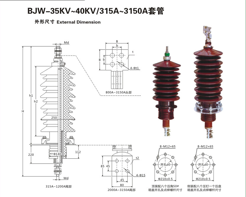 BJW-35KV~40KV/315A~3150A變壓器套管