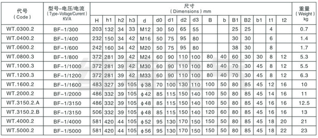 BF-1 KV/300A-5000A變壓器套管(尾部板式連接)