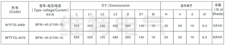 B-變壓器用;D-單體瓷絕緣;F-復合瓷絕緣;J-有附加絕緣:W-防污;L-穿纜(或可裝電流互感器),套管型號中“廣前 的數(shù)字表示額定電壓(KV ) 后的數(shù)字表示額定電流(A)。